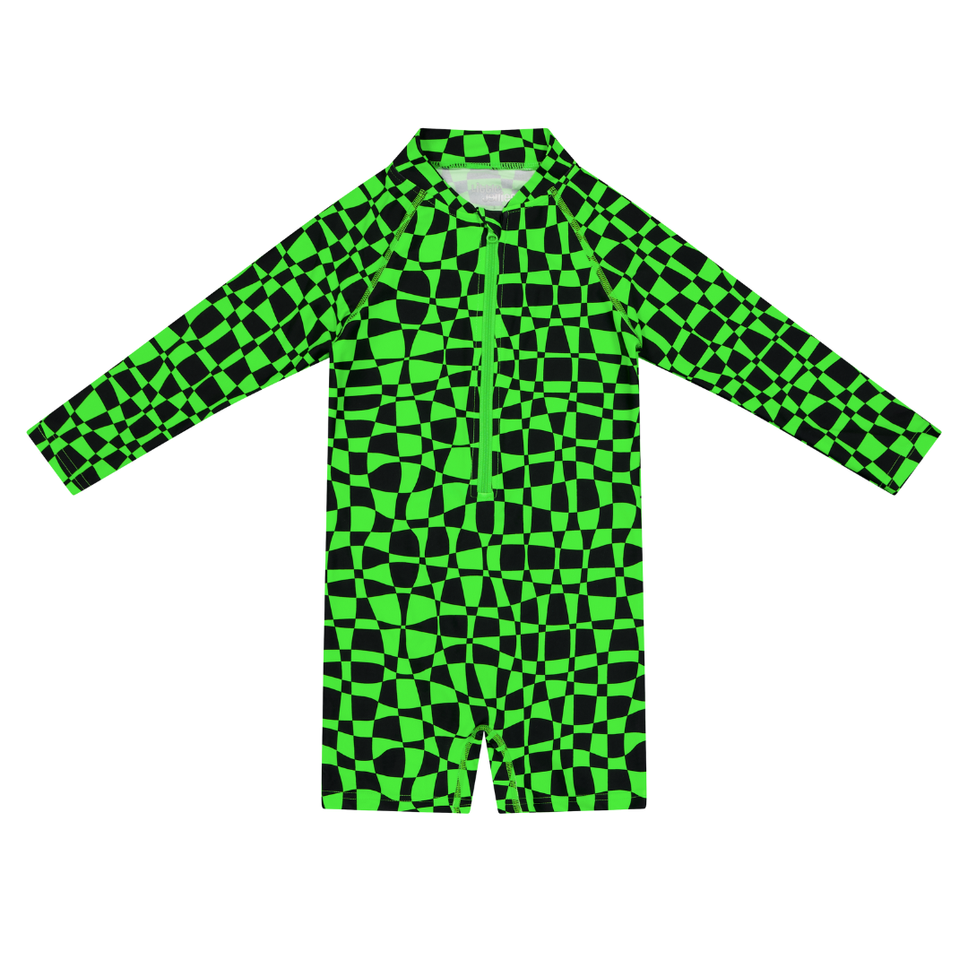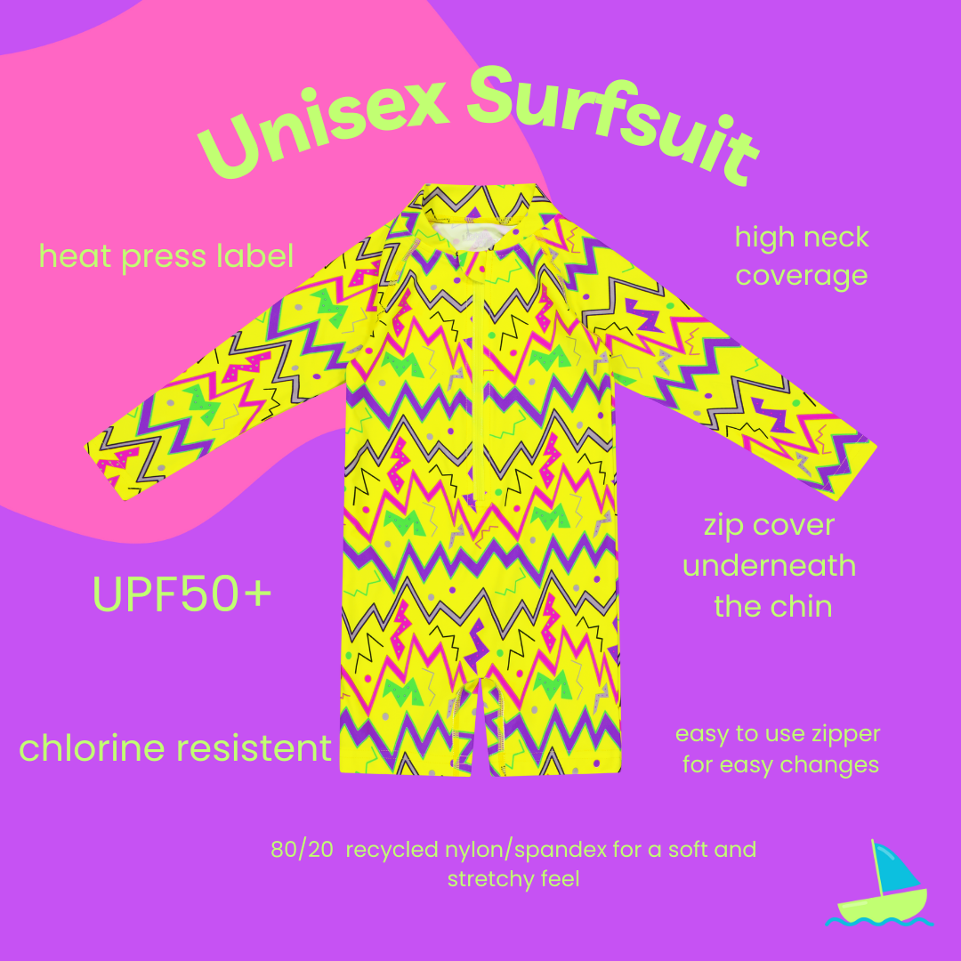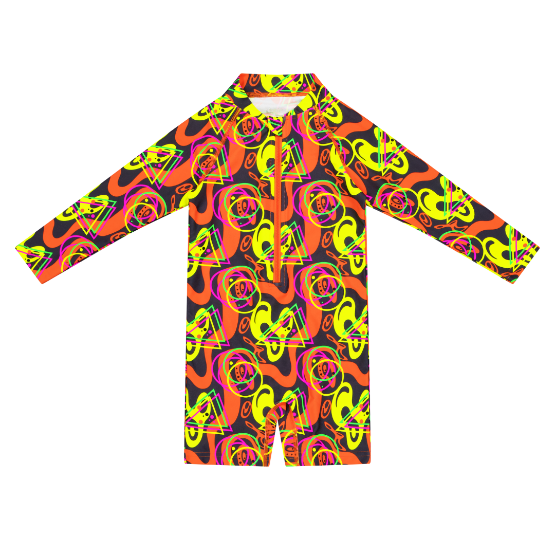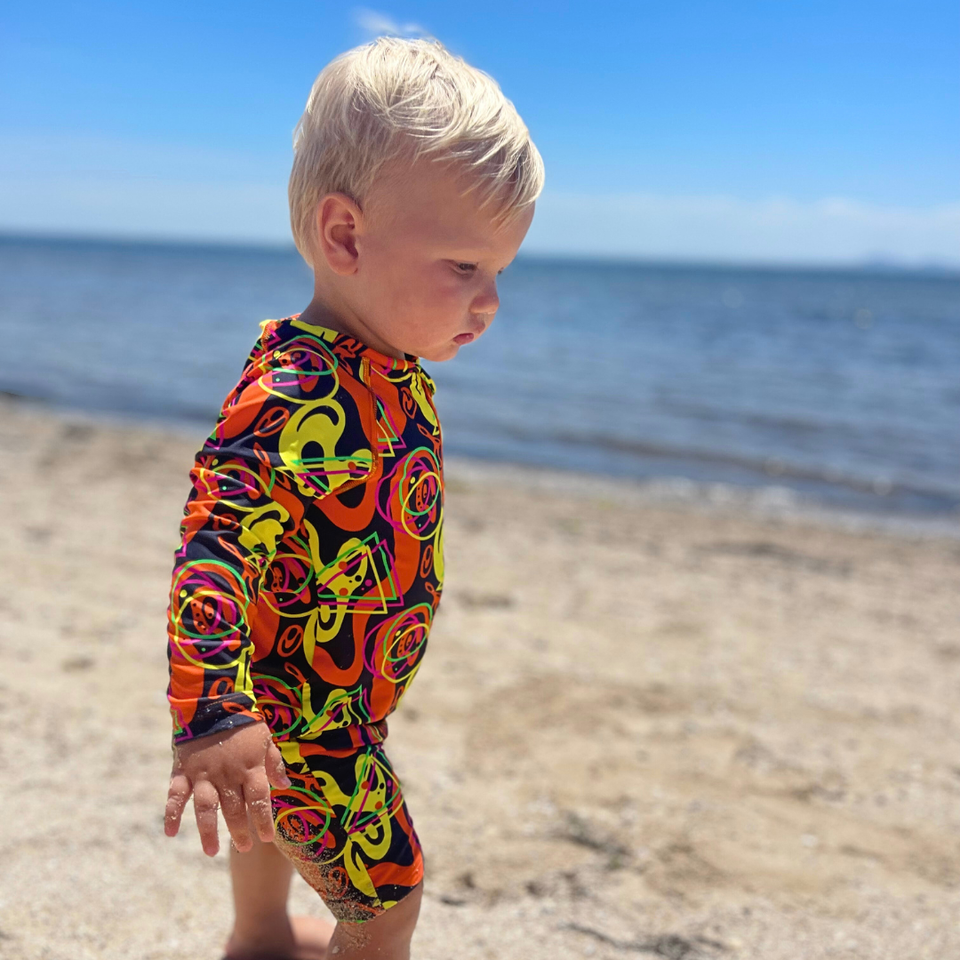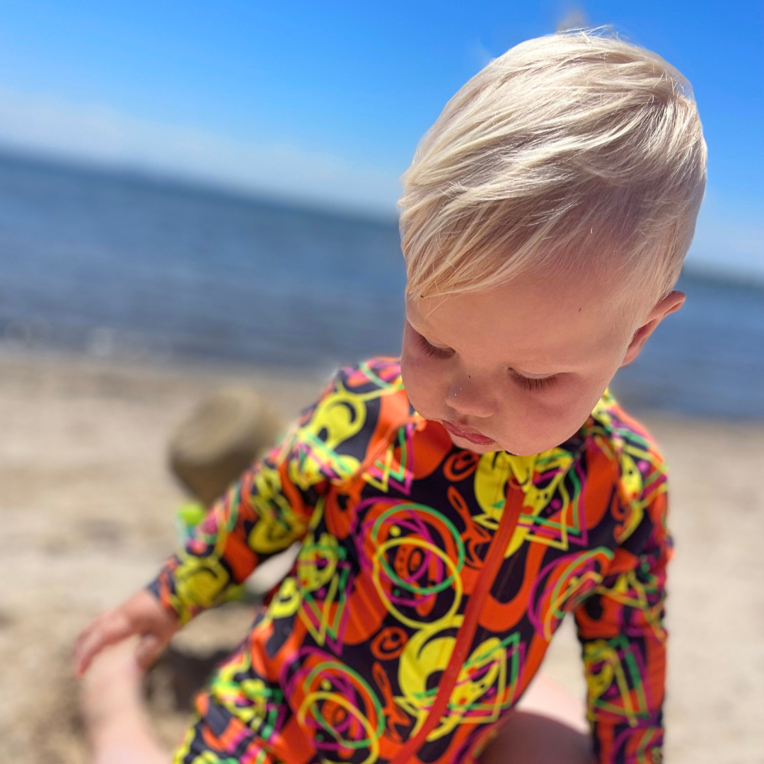 Our Unisex Neon Surfsuit combines fun and functionality. Available in nine playful prints and four solid colour combinations and made from eco-friendly and chlorine resistant fabric, our surfsuit is vibrant and comfortable. It provides sun protection and high visibility, helping kids stay safe and protected around the water.